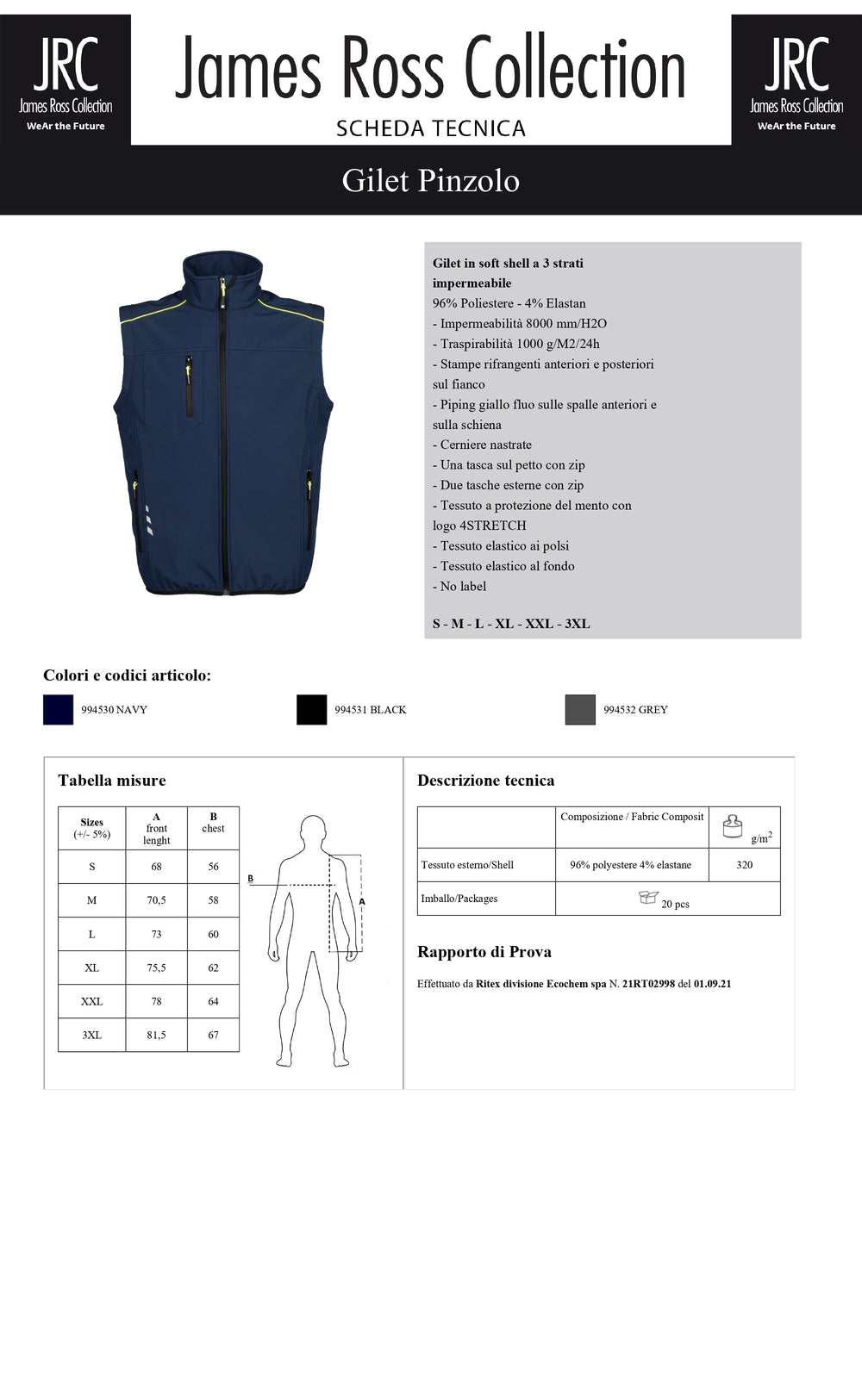 GILET IN SOFTSHELL DA LAVORO IMPERMEABILE JRC PINZOLO UOMO