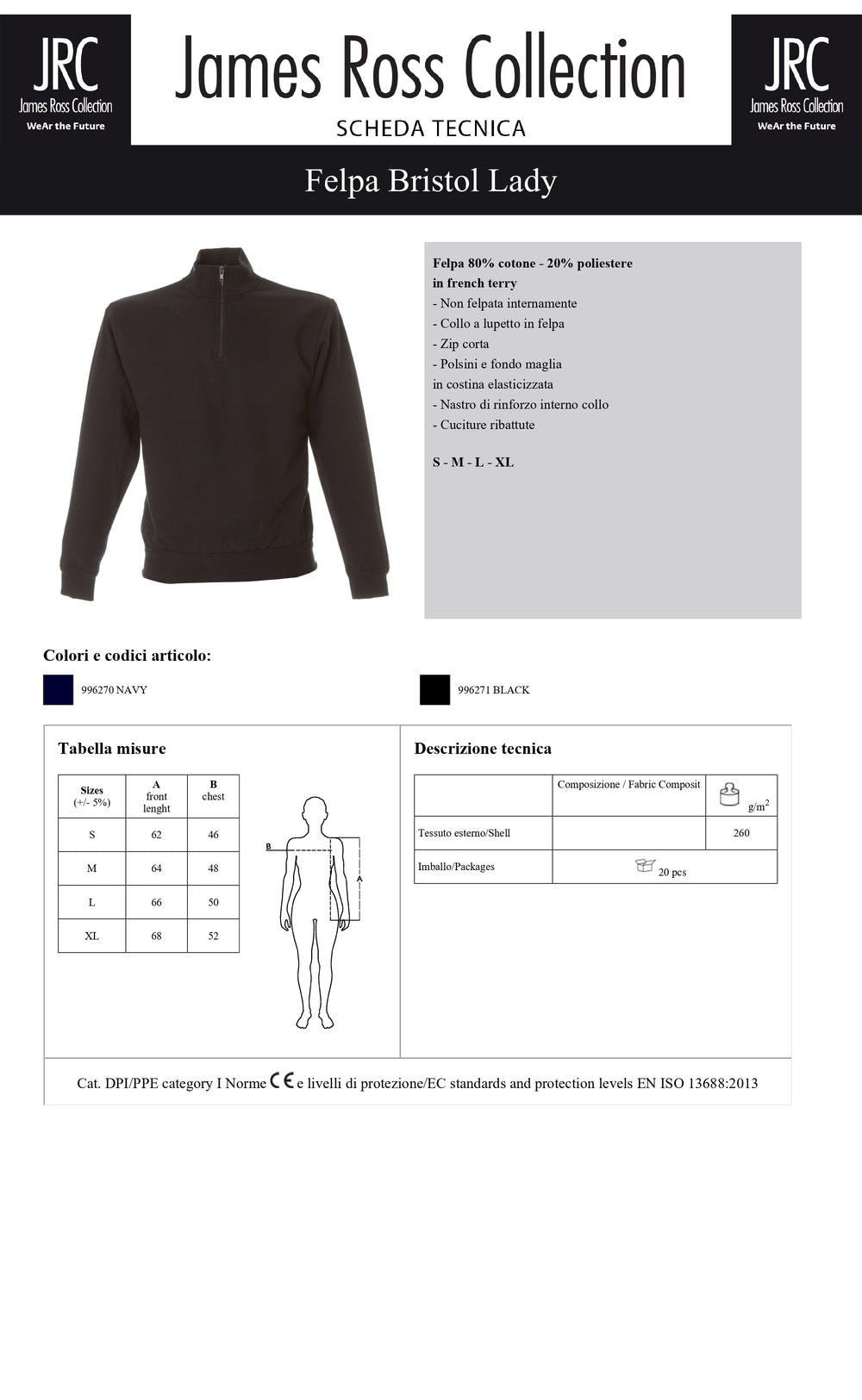 FELPA CON MEZZA ZIP JRC BRISTOL LADY DONNA