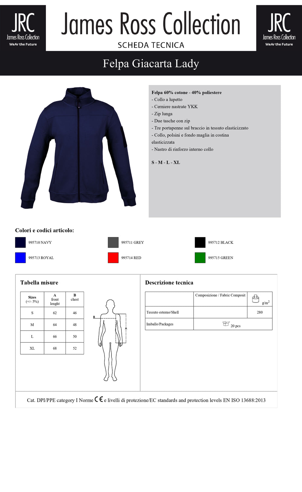 FELPA DA LAVORO CON ZIP JRC GIACARTA LADY DONNA