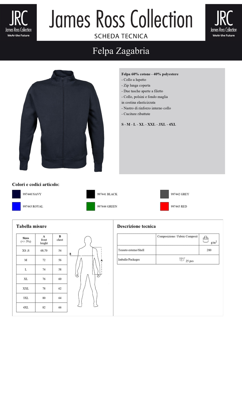 FELPA CON ZIP JRC ZAGABRIA UOMO