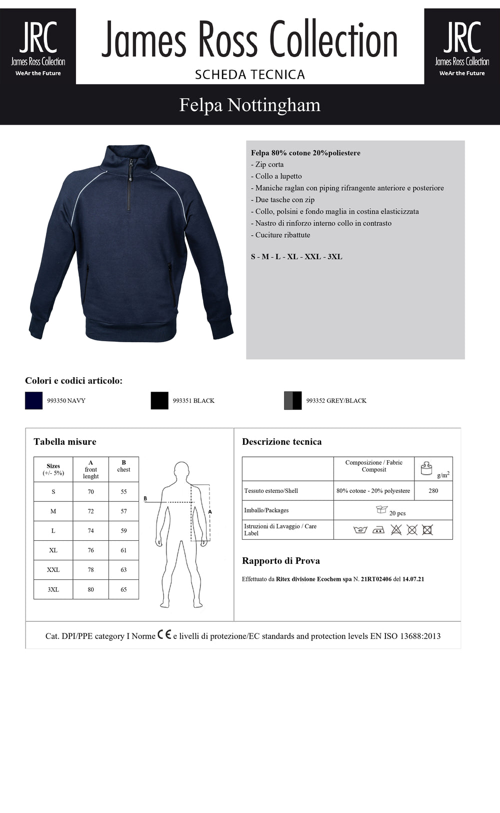 Taglie: S, M, L, XL, XXL, 3XL