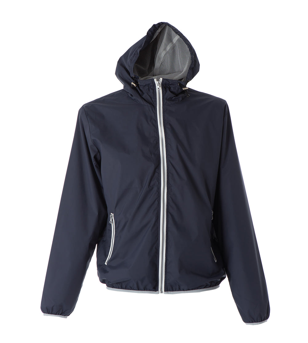 Giubbino in nylon morbido 20D - Non imbottito, cappuccio con chiusura regolabile con coulisse, due tasche esterne con zip e tasca interna portafoglio. Fodera retinata con apertura sul fondo mediante zip per facilitare personalizzazioni, polsini con tessuto elastico, tessuto elastico nel fondo.