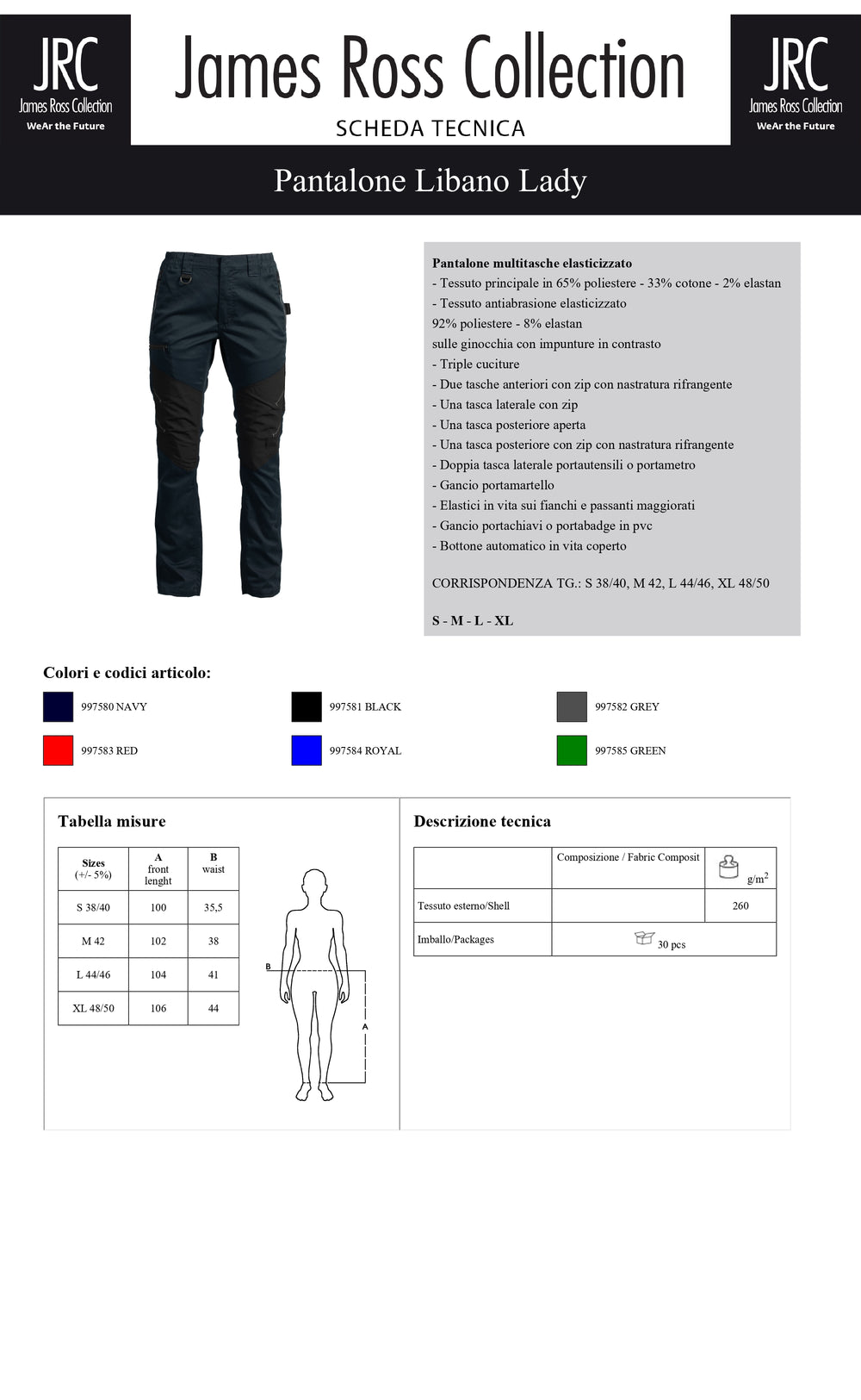 PANTALONE DA LAVORO MULTITASCHE ELASTICIZZATO JRC LIBANO LADY DONNA