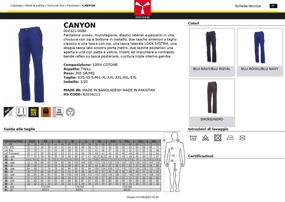 PANTALONE DA LAVORO MULTITASCHE ELASTICIZZATO PAYPER CANYON UNISEX
