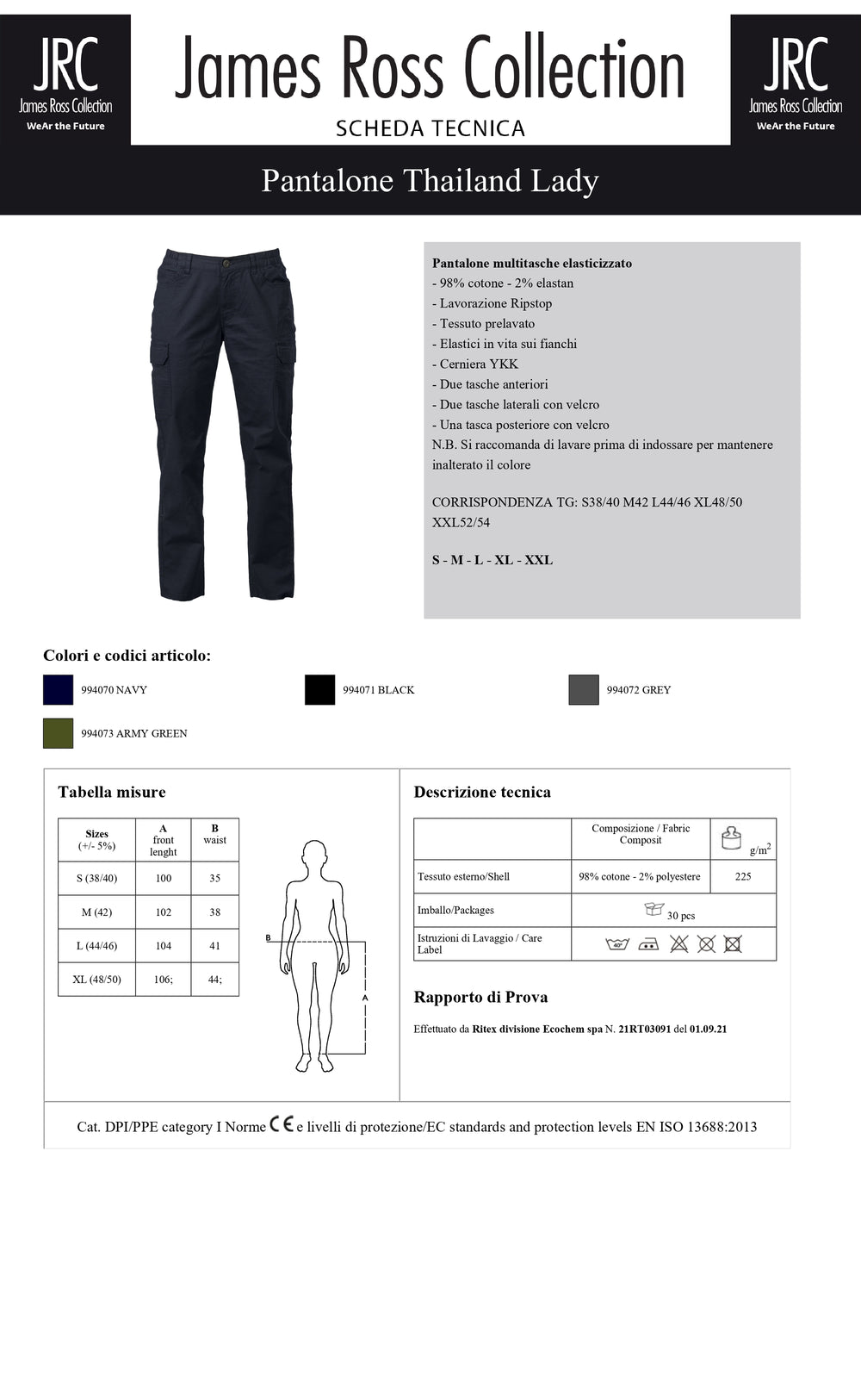 PANTALONE MULTITASCHE ELASTICIZZATO JRC THAILAND LADY DONNA