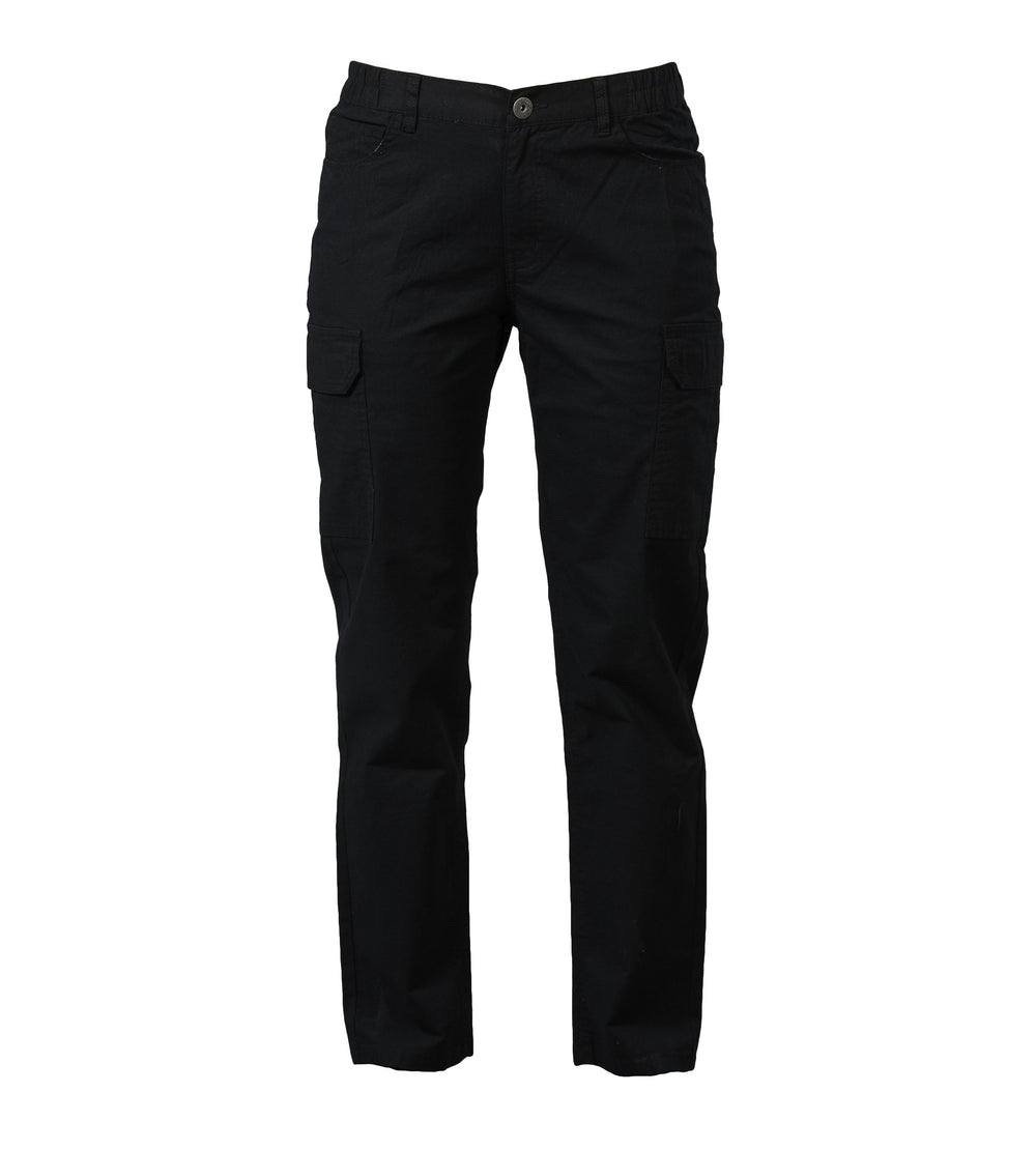 Pantalone multitasche elasticizzato - 98% cotone - 2% elastan - Lavorazione Ripstop, tessuto prelavato, elastici in vita sui fianchi e cerniera YKK. Due tasche anteriori, due tasche laterali con velcro e una tasca posteriore con velcro.
