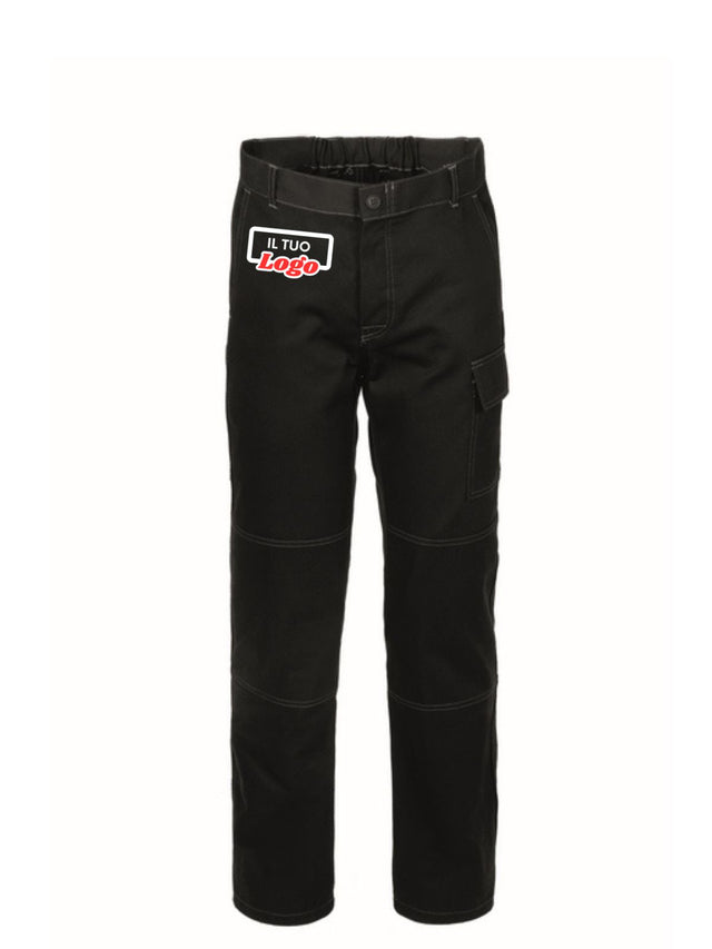 PANTALONE UOMO DA LAVORO CLASSICO CON ELASTICO POSTERIORE E LOGO LATO TASCA GAMBA DESTRA