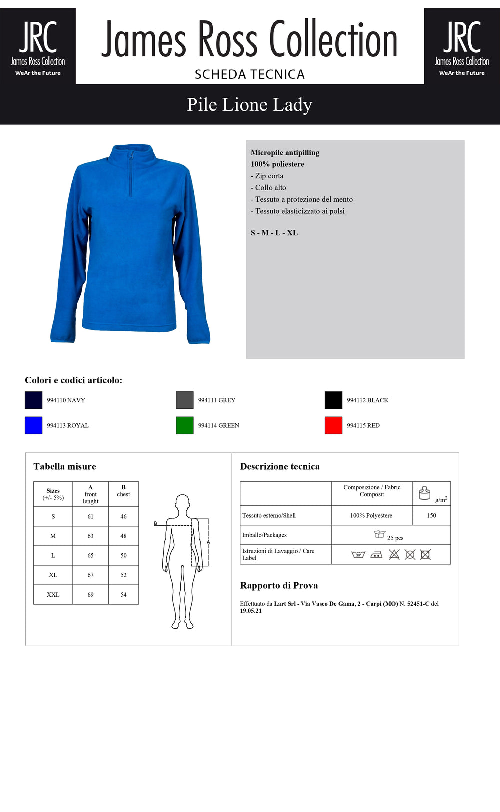 Taglie: S, M, L, XL, XXL