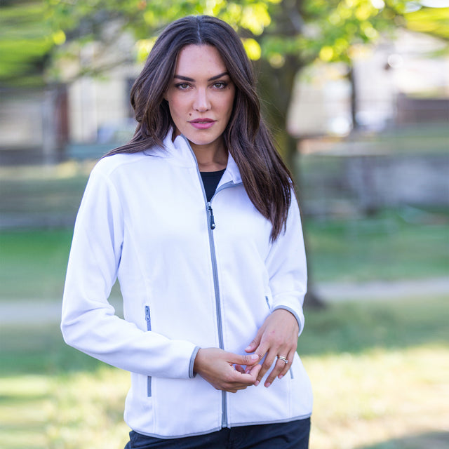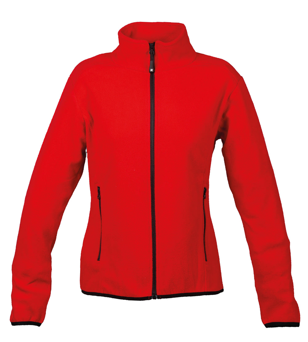 Pile da donna antipilling - 100% poliestere. Zip lunga nastrata, due tasche con zip nastrate, maniche raglan, cuciture cordonate lungo fianchi e spalle, tessuto elasticizzato ai polsi e tessuto elasticizzato al fondo.