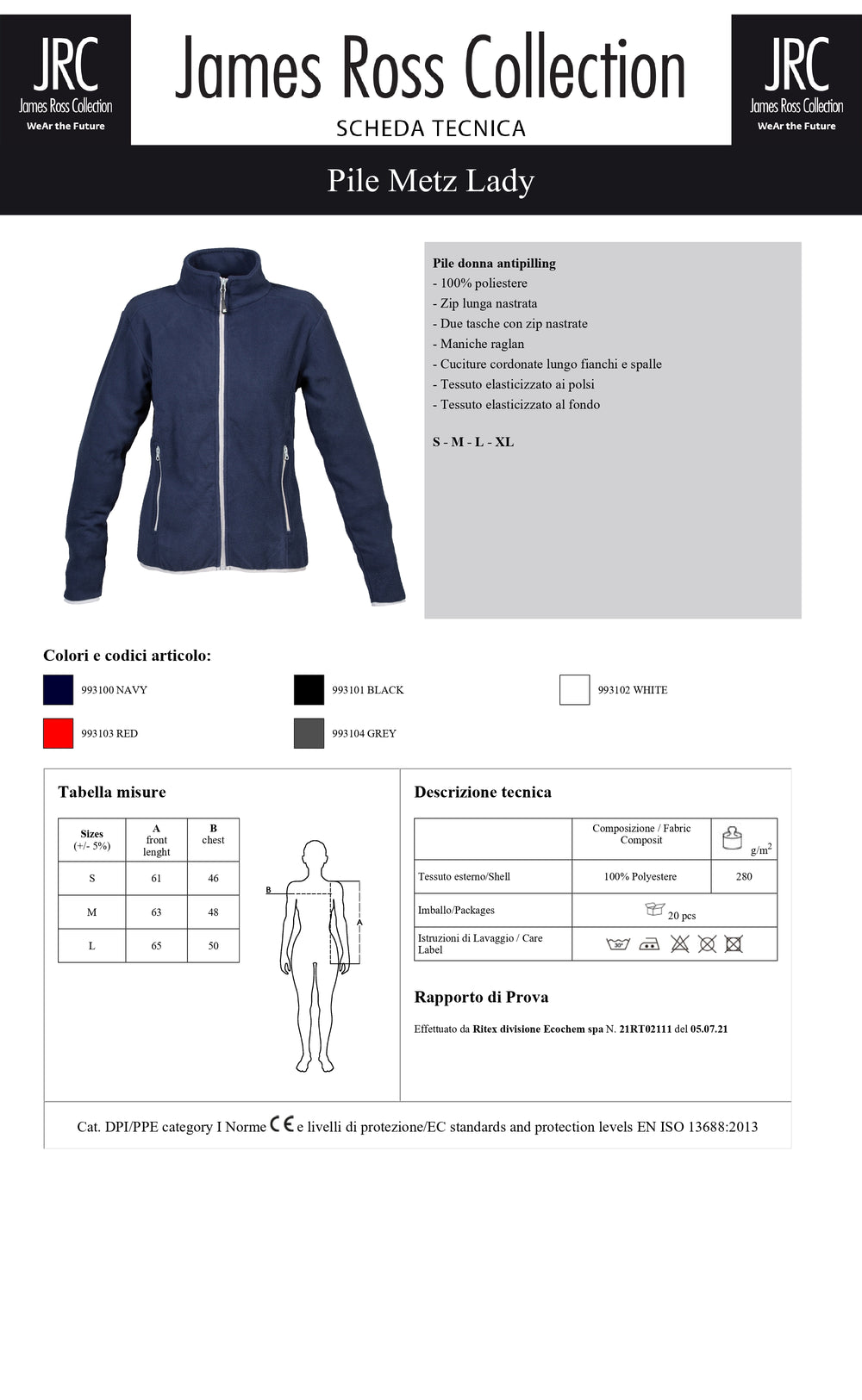 PILE CON ZIP JRC METZ LADY DONNA