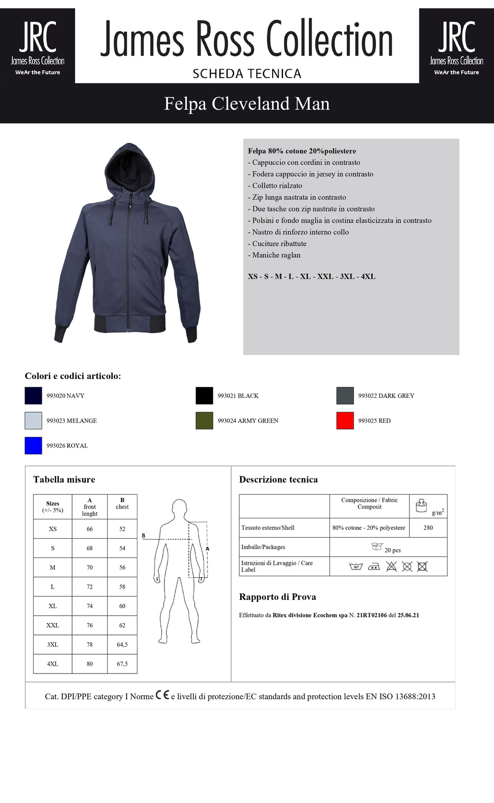 FELPA CON CAPPUCCIO E ZIP JRC CLEVELAND MAN UOMO