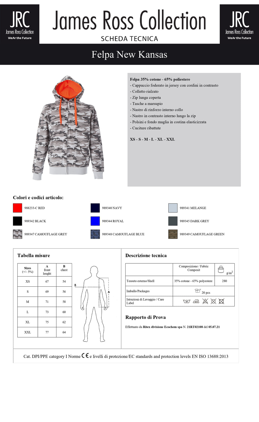 FELPA CON CAPPUCCIO E ZIP JRC NEW KANSAS UOMO