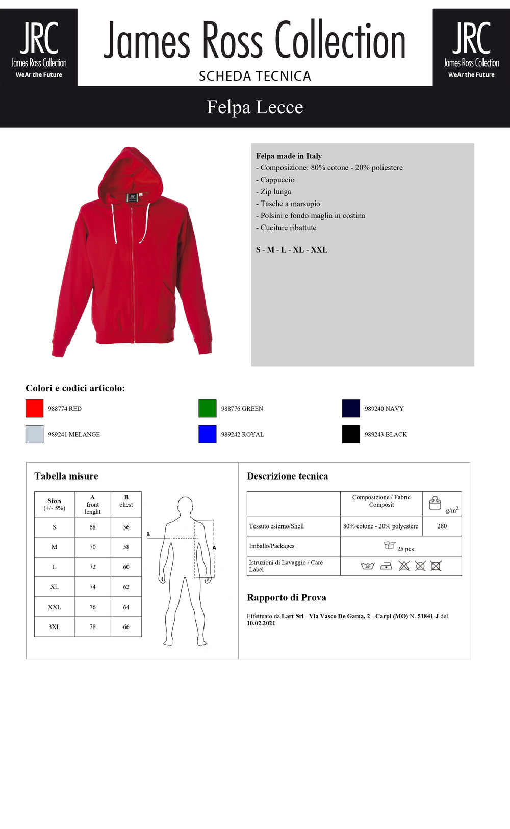 FELPA CON CAPPUCCIO E ZIP MADE IN ITALY JRC LECCE UOMO