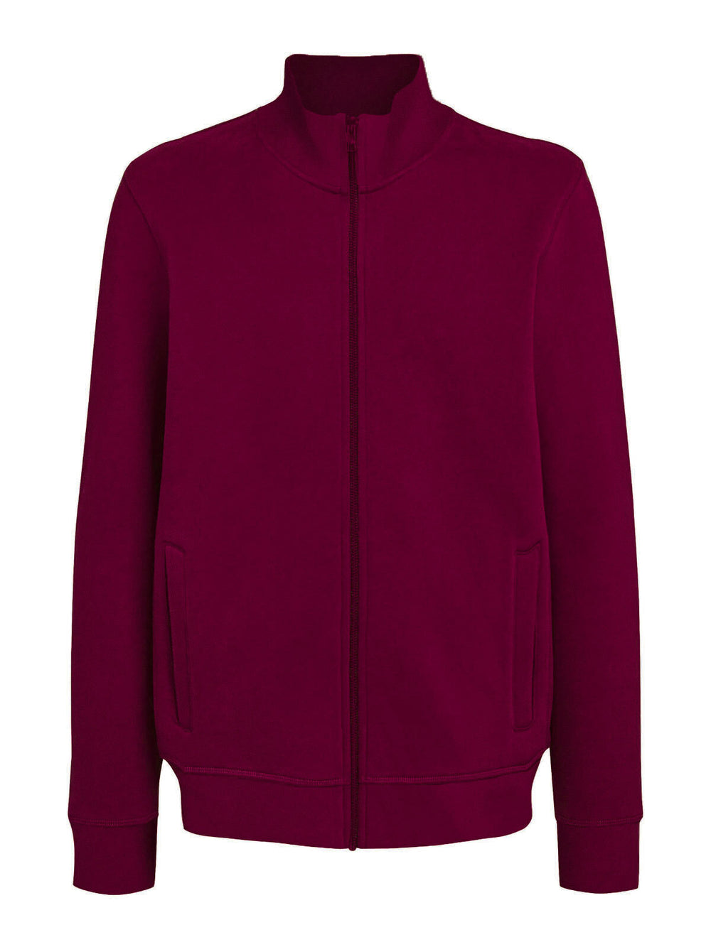 Felpa con zip 70% cotone 30% poliestere. Tessuto PST: interno in poliestere ed esterno 100% cotone. Felpa con maniche set-in, felpata internamente, zip intera, tasche a filetto, orlo inferiore e polsini con costina, struttura con cuciture laterali. Etichetta strappabile.