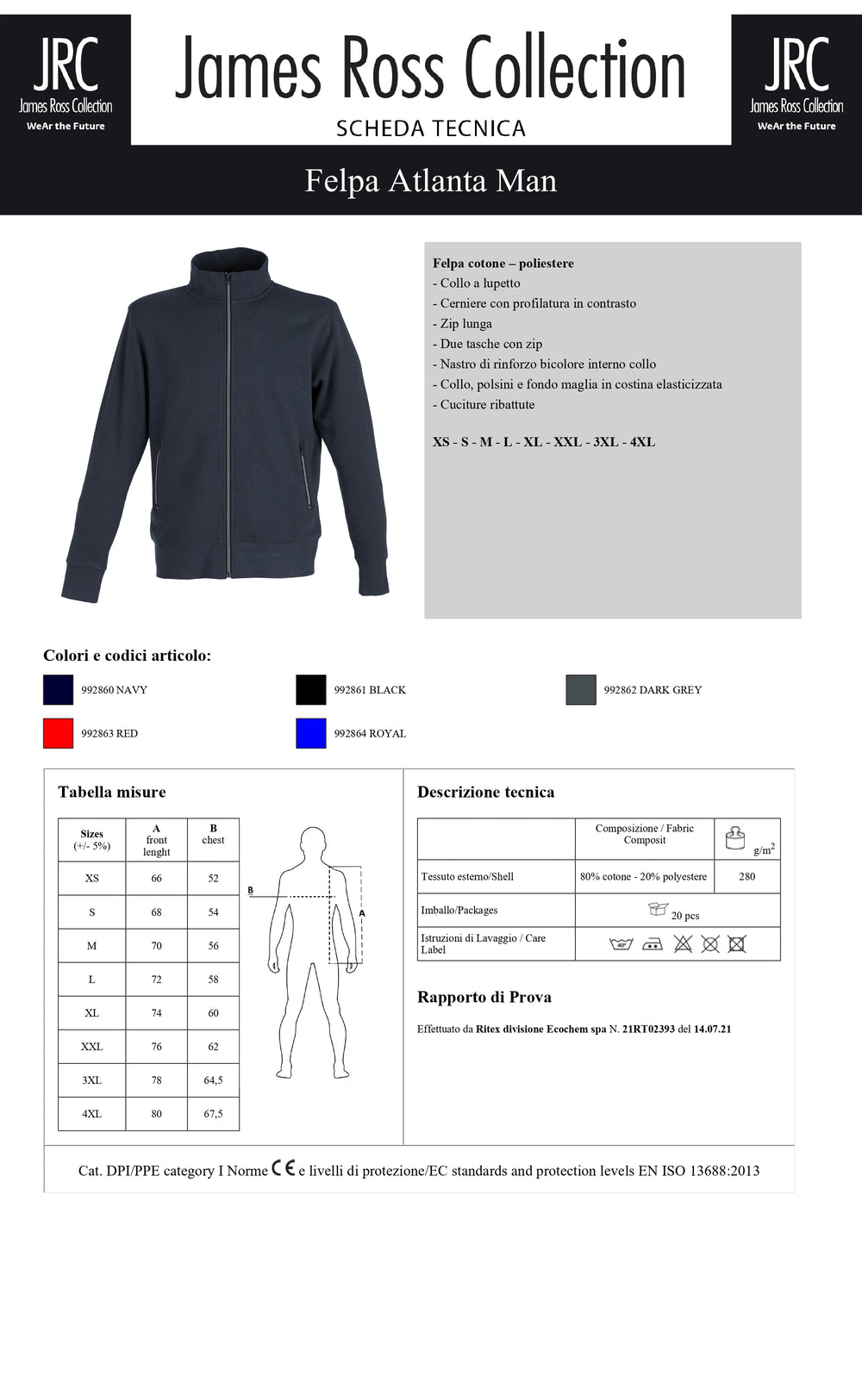 FELPA CON ZIP JRC ATLANTA MAN UOMO