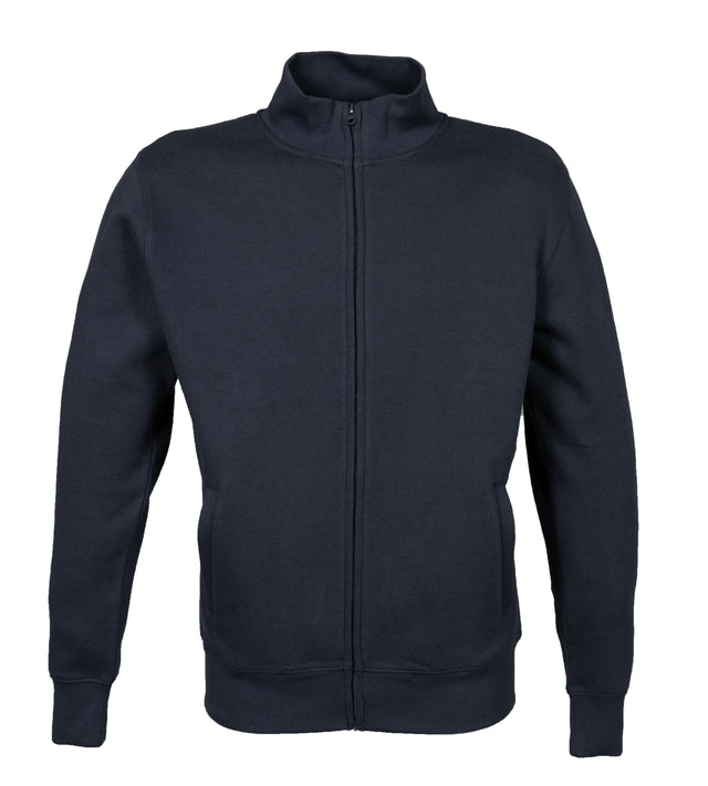 Felpa con zip 60% cotone - 40% polyestere. Collo a lupetto, zip lunga coperta, due tasche aperte a filetto. Collo, polsini e fondo maglia in costina elasticizzata, nastro di rinforzo interno collo, cuciture ribattute.