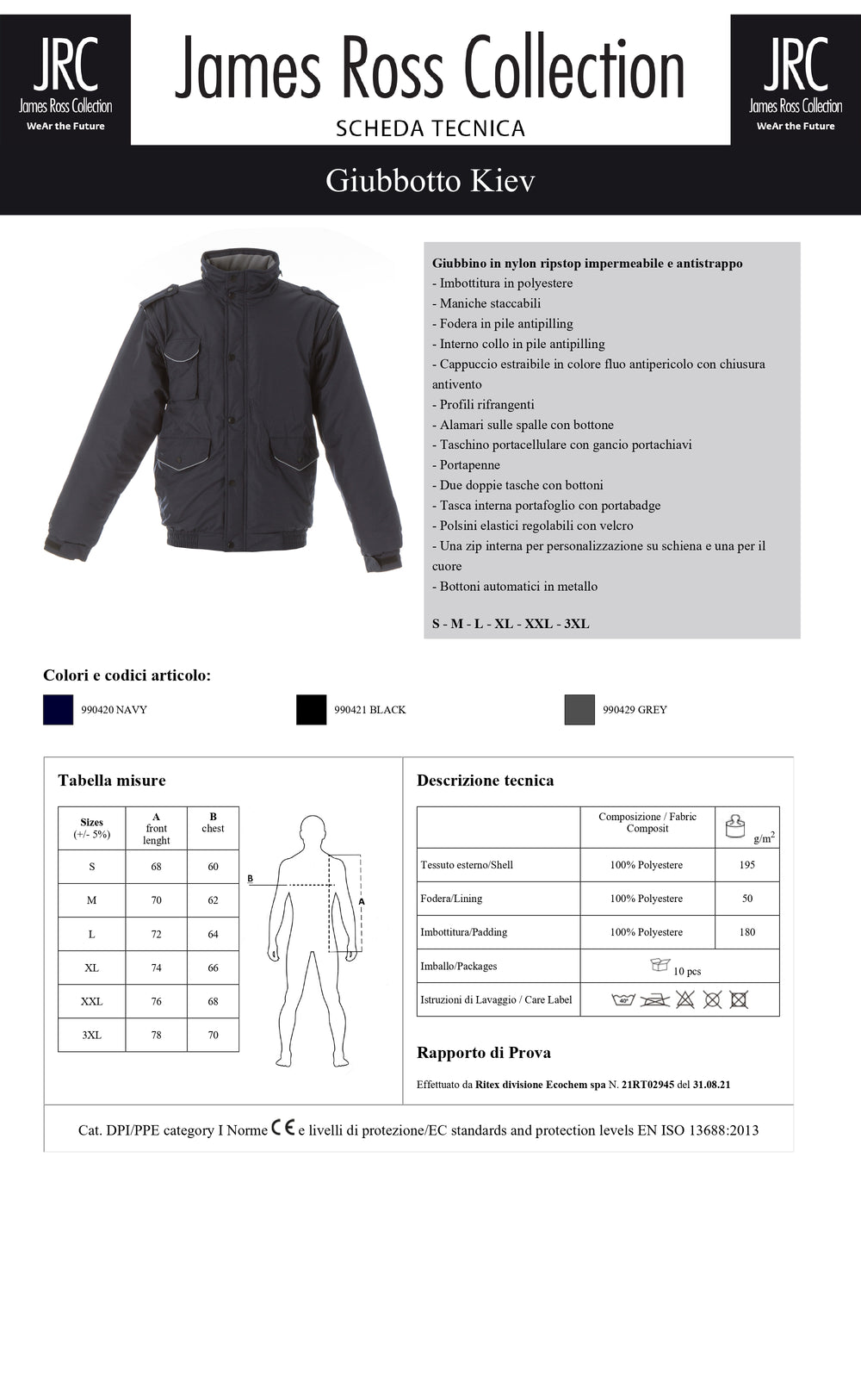 GIACCA DA LAVORO IMBOTTITA IMPERMEABILE JRC KIEV UOMO