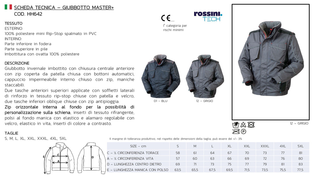 GIACCA DA LAVORO IMBOTTITA INVERNALE ROSSINI MASTER+ HH642 UOMO