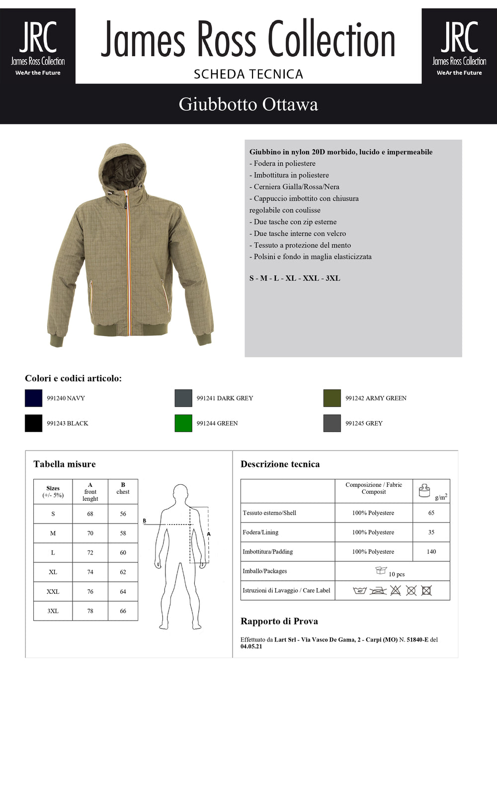 GIACCA IMBOTTITA IMPERMEABILE JRC OTTAWA UOMO