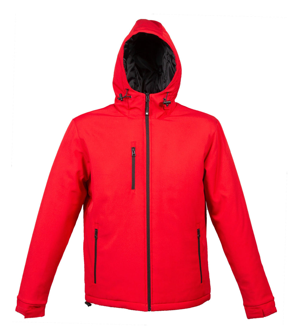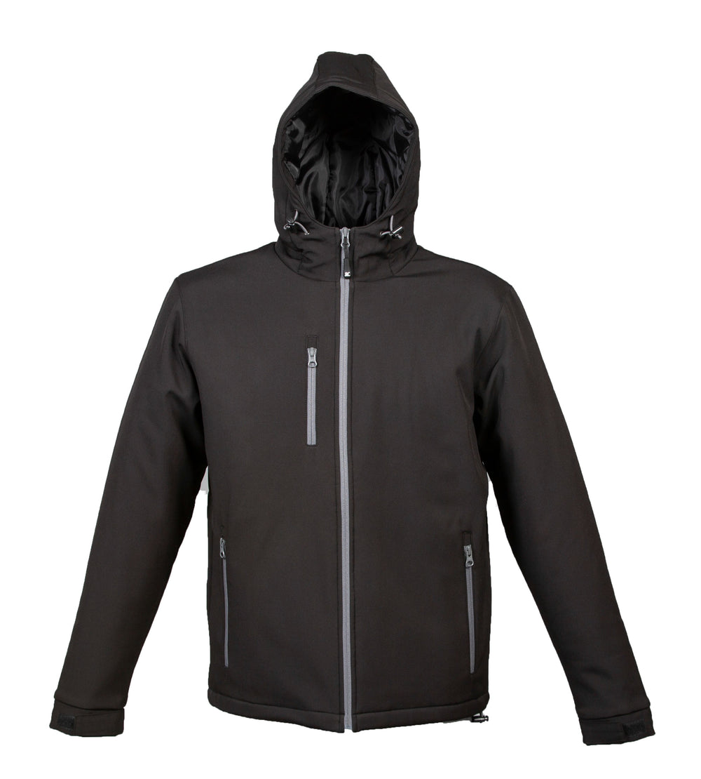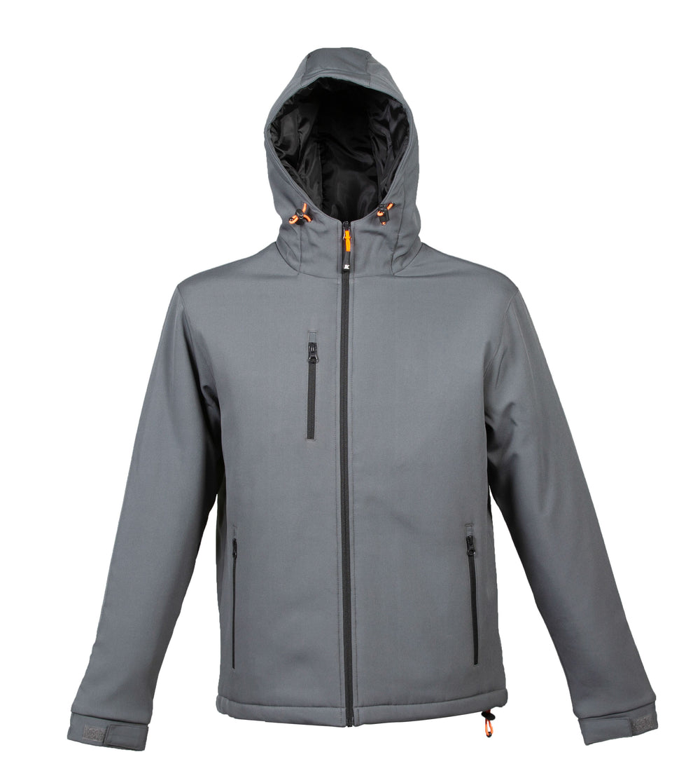 Giubbino in soft shell a due strati impermeabile e traspirante - 96% polyestere - 4% elastane - Impermeabilità 6000 mm/HO. Fodera in polyestere con cuciture verticali, imbottitura in polyestere, cappuccio imbottito con coulisse, cerniere nastrate YKK, una tasca sul petto con zip, due tasche esterne con zip, una tasca interna portafoglio con velcro, polsini regolabili con velcro e coulisse al fondo.
