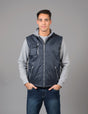 Gilet in poliestere pongee - Spalmatura in PVC impermeabile, fodera in pile antipilling, interno collo in pile. Una tasca con zip sul petto, un taschino portacellulare sul petto, due tasche esterne con zip e una tasca interna portafoglio con velcro, coulisse al fondo.
