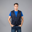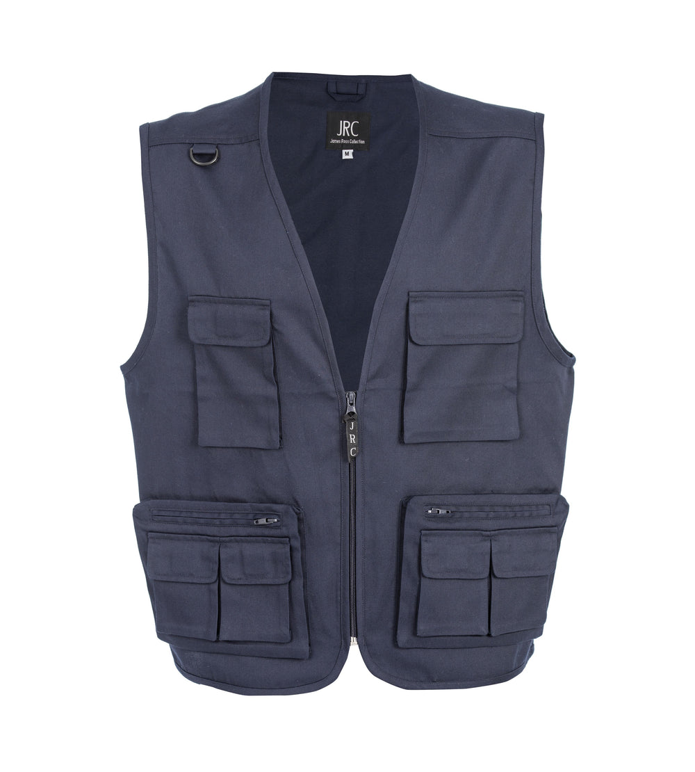 Gilet multitasche 80% poliestere – 20% cotone - Non foderato, gancio portabadge o portachiavi, un taschino portacellulare sul petto, una tasca sul petto e due doppie tasche con zip, con due taschini applicati.