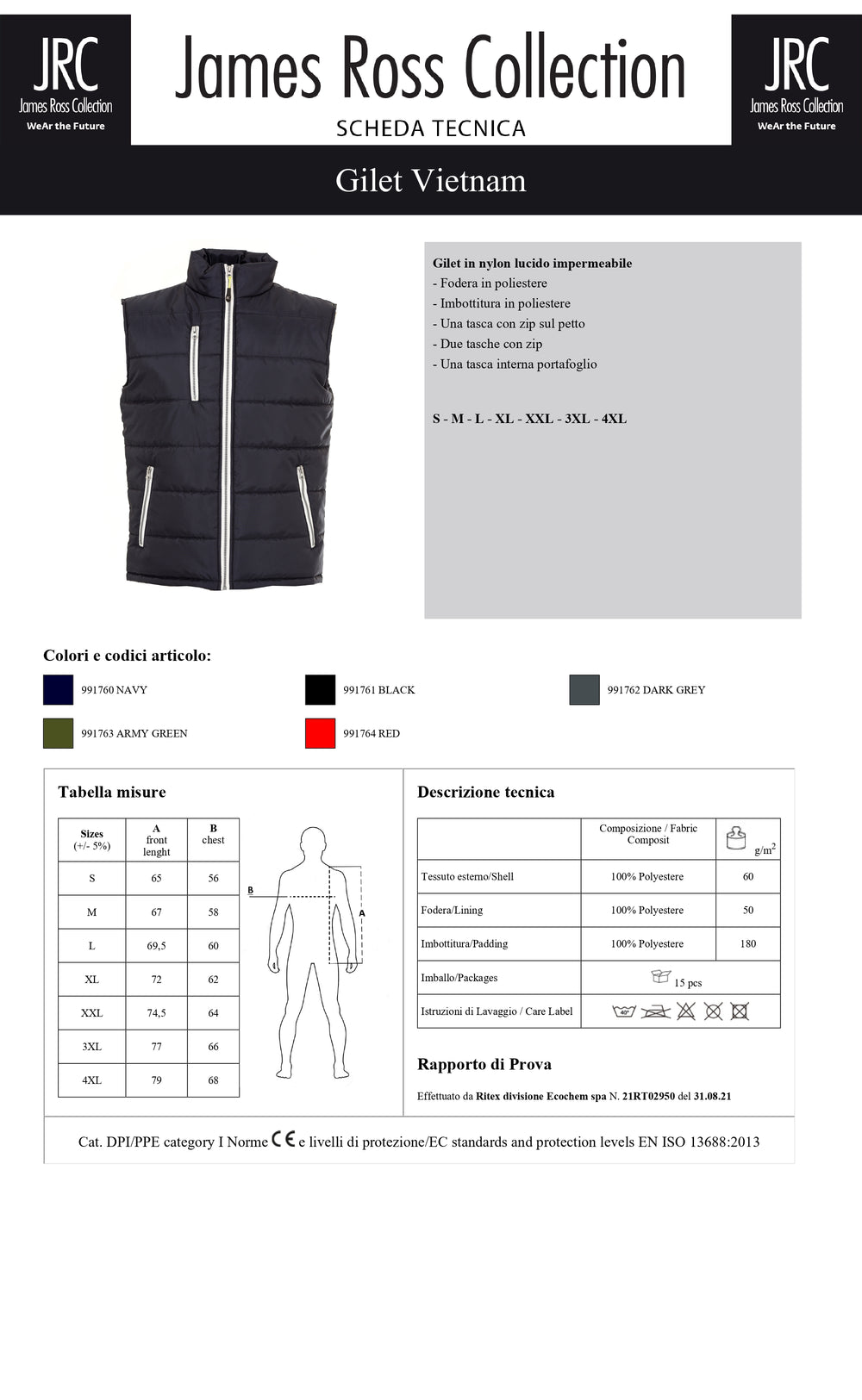 GILET IMBOTTITO IMPERMEABILE JRC VIETNAM UOMO