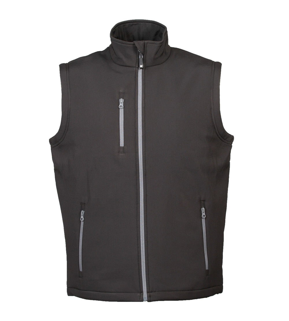 Gilet in soft shell a 2 strati impermeabile e imbottito - 96% polyestere - 4% elastane - Impermeabilità 6000 mm/H2O. Fodera in polyestere con cuciture verticali, imbottitura in polyestere, cerniere nastrate YKK. Una tasca sul petto con zip, due tasche esterne con zip, una tasca interna portafoglio con velcro, tessuto interno a protezione del mento, coulisse al fondo.