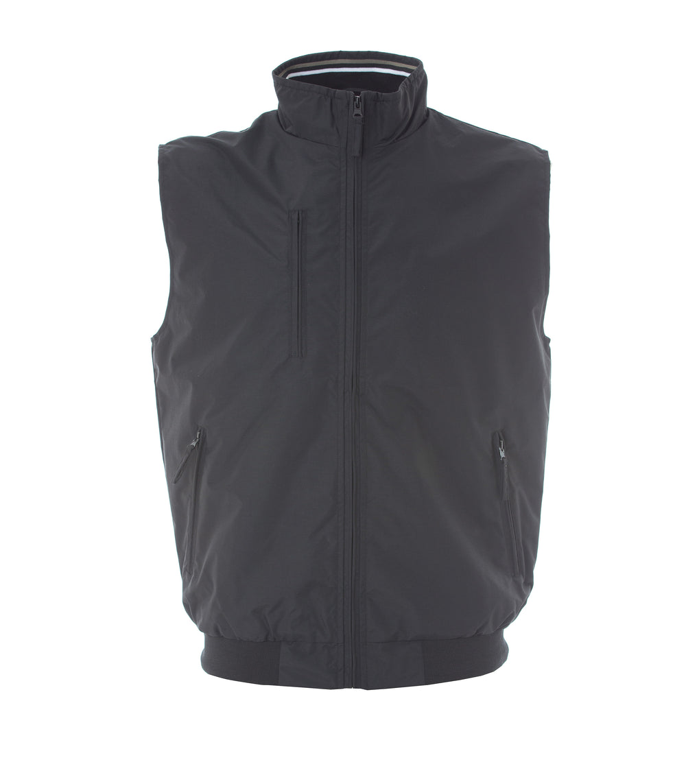 Gilet in 100% poliammide/nylon taslan - Non imbottito, interno collo e fondo maglia elasticizzata con profili in contrasto, fodera retinata con apertura sul fondo mediante zip per facilitare personalizzazioni. Due tasche esterne con zip coperte, una tasca sul petto con zip coperta e una tasca interna portafoglio.