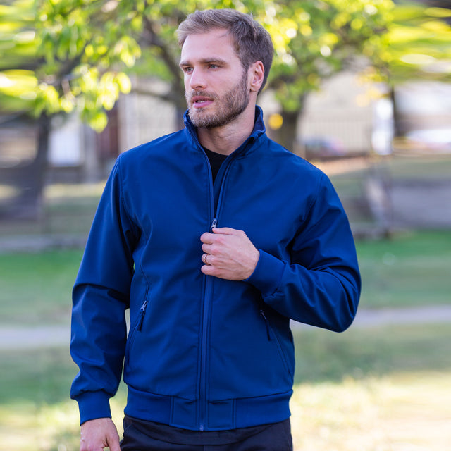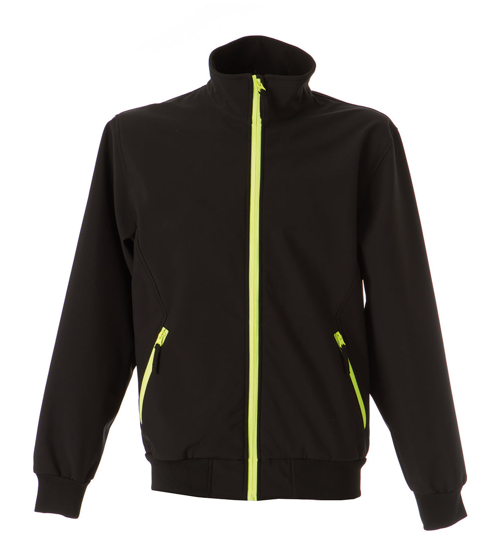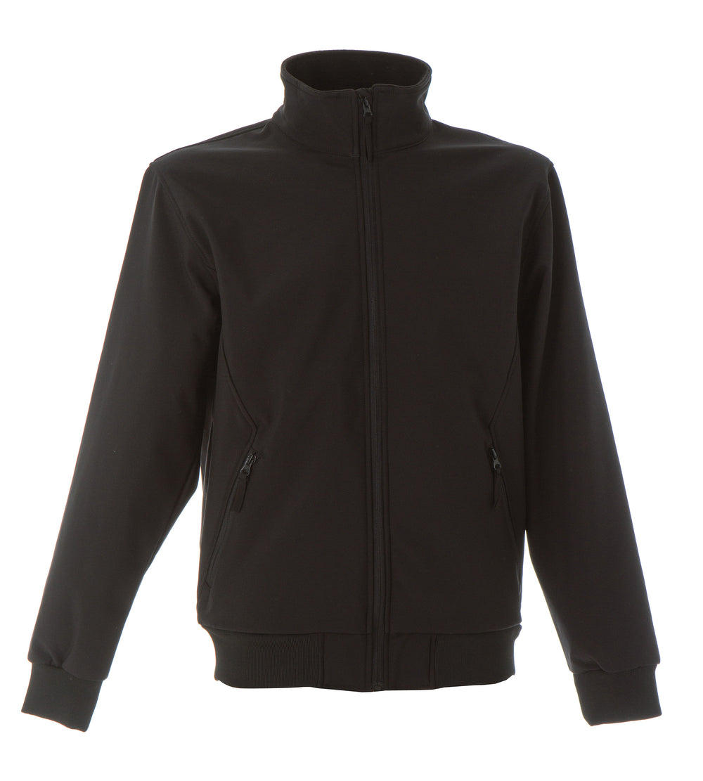 Giubbino in soft shell a tre strati impermeabile e traspirante - 96% polyestere - 4% elastan - Impermeabilità 8000 mm/H2O - Traspirabilità 1000 g/M2/24h. Interno in pile antipilling, cerniere nastrate, due tasche esterne con zip, polsini in maglia elasticizzati e fondo maglia elasticizzato.