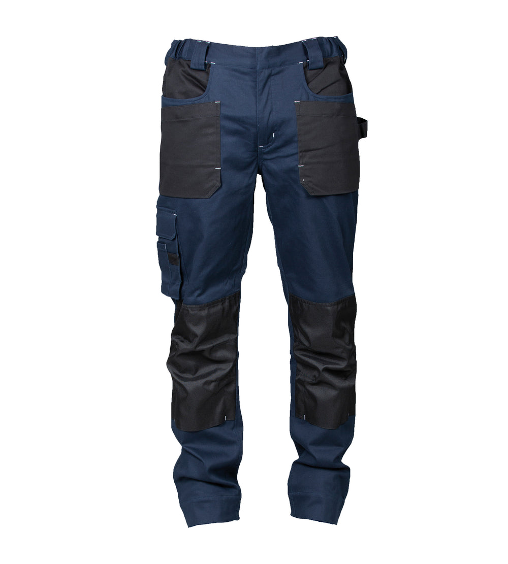 Pantalone multitasche elasticizzato - 98% cotone - 2% elastan. Tessuto prelavato, fodera interna in maglina di poliestere, dettagli e cuciture in contrasto, due tasche anteriori, due tasche applicate con bottoni automatici coperti, una tasca laterale con gancio portachiavi o portabadge, doppio portapenna e passante portautensile e gancio portamartello ,tasca portametro, taschino portaoggetti e due tasche posteriori di cui una con chiusura con velcro. Portaginocchiere in nylon 400D, elastici in vita e passanti maggiorati, rinforzo posteriore antistrappo, bottone automatico in vita coperto. - Nessun elemento graffiante.