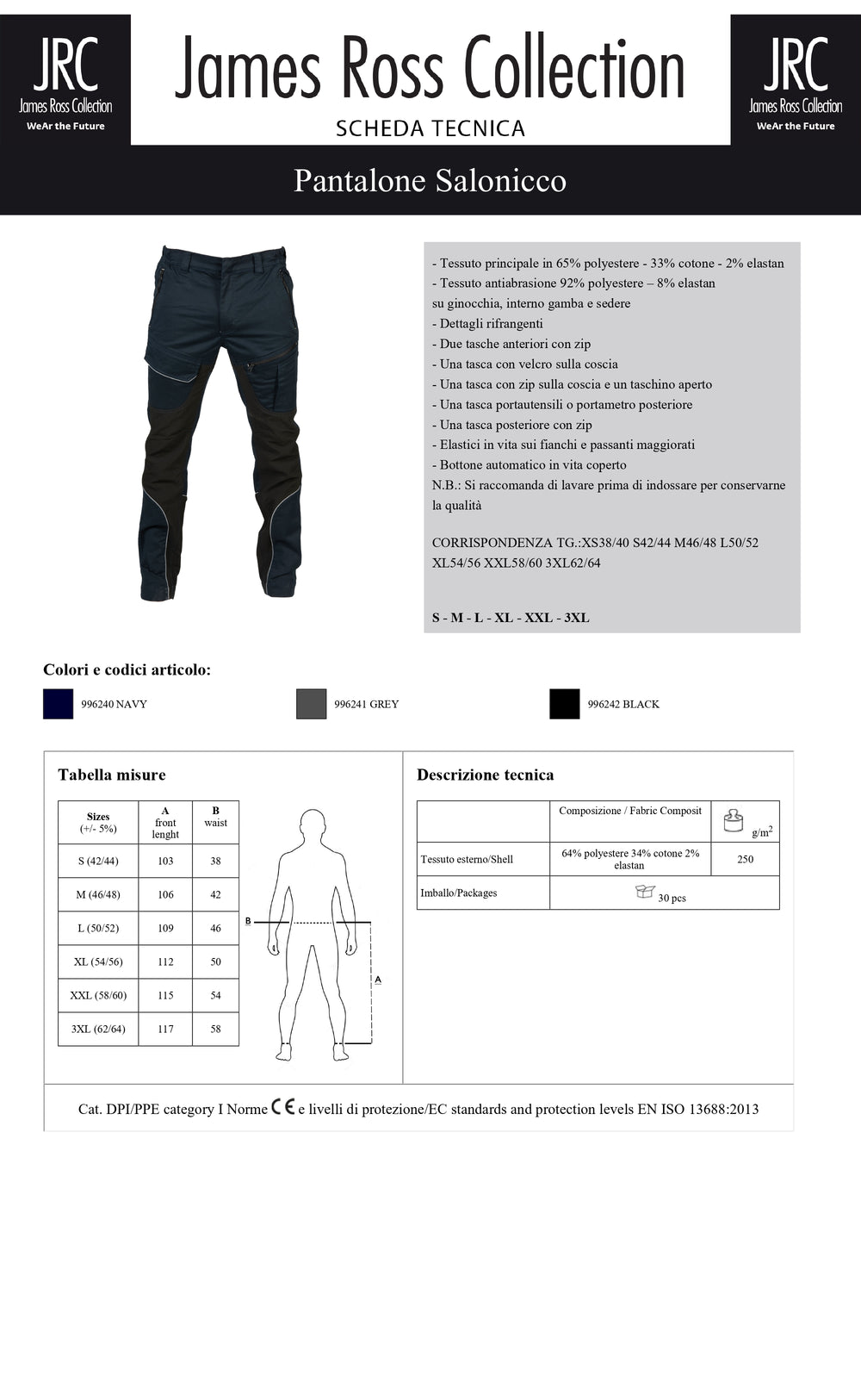 PANTALONE DA LAVORO JRC SALONICCO UOMO