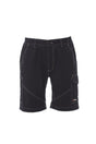 Bermuda da lavoro uomo, elastici laterali e passanti in vita, chiusura con zip e bottone in plastica, due tasche anteriori a taglio classico, una tasca laterale LOCK SYSTEM, un porta metro, due tasche posteriori una aperta e una con patta e velcro, inserti ed impuntare a contrasto, bande reflex su tasca posteriore, cuciture triple.