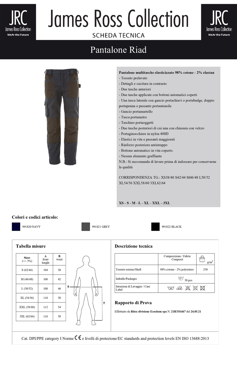 CORRISPONDENZA TG.: XS38/40 S42/44 M46/48 L50/52 XL54/56 XXL58/60 3XL62/64