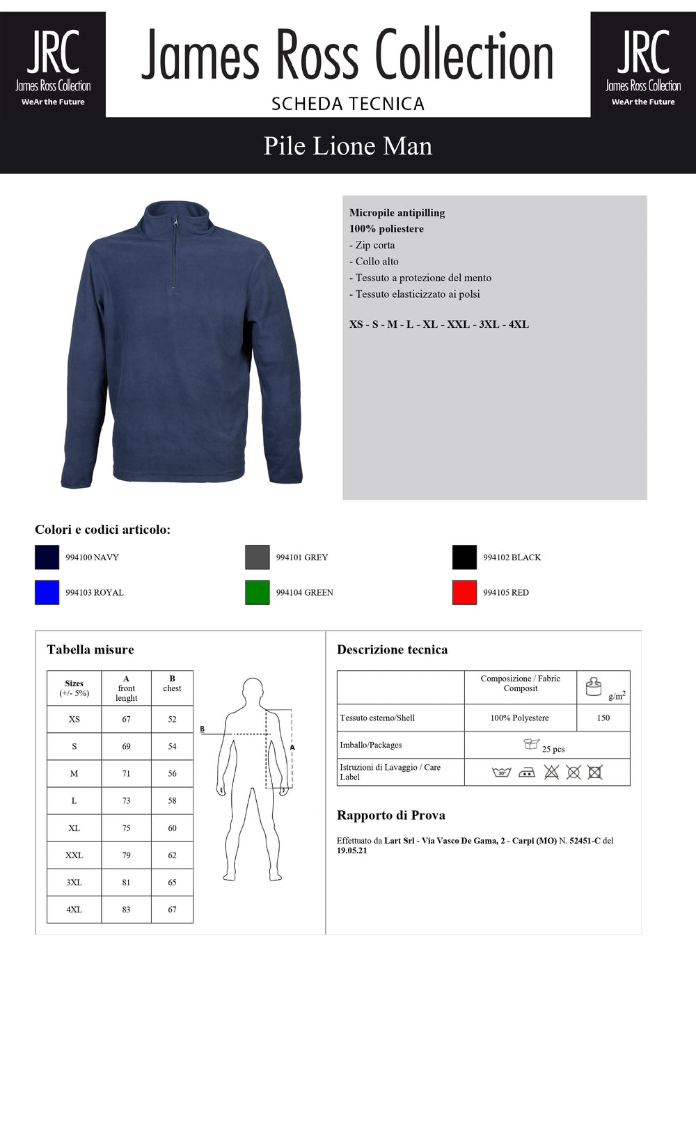 PILE CON MEZZA ZIP JRC LIONE MAN UOMO