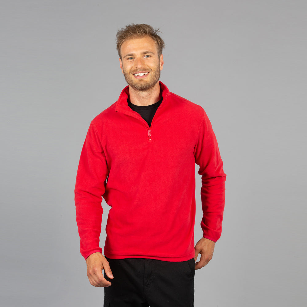 Micropile antipilling 100% poliestere. Zip corta, collo alto, tessuto a protezione del mento e tessuto elasticizzato ai polsi.