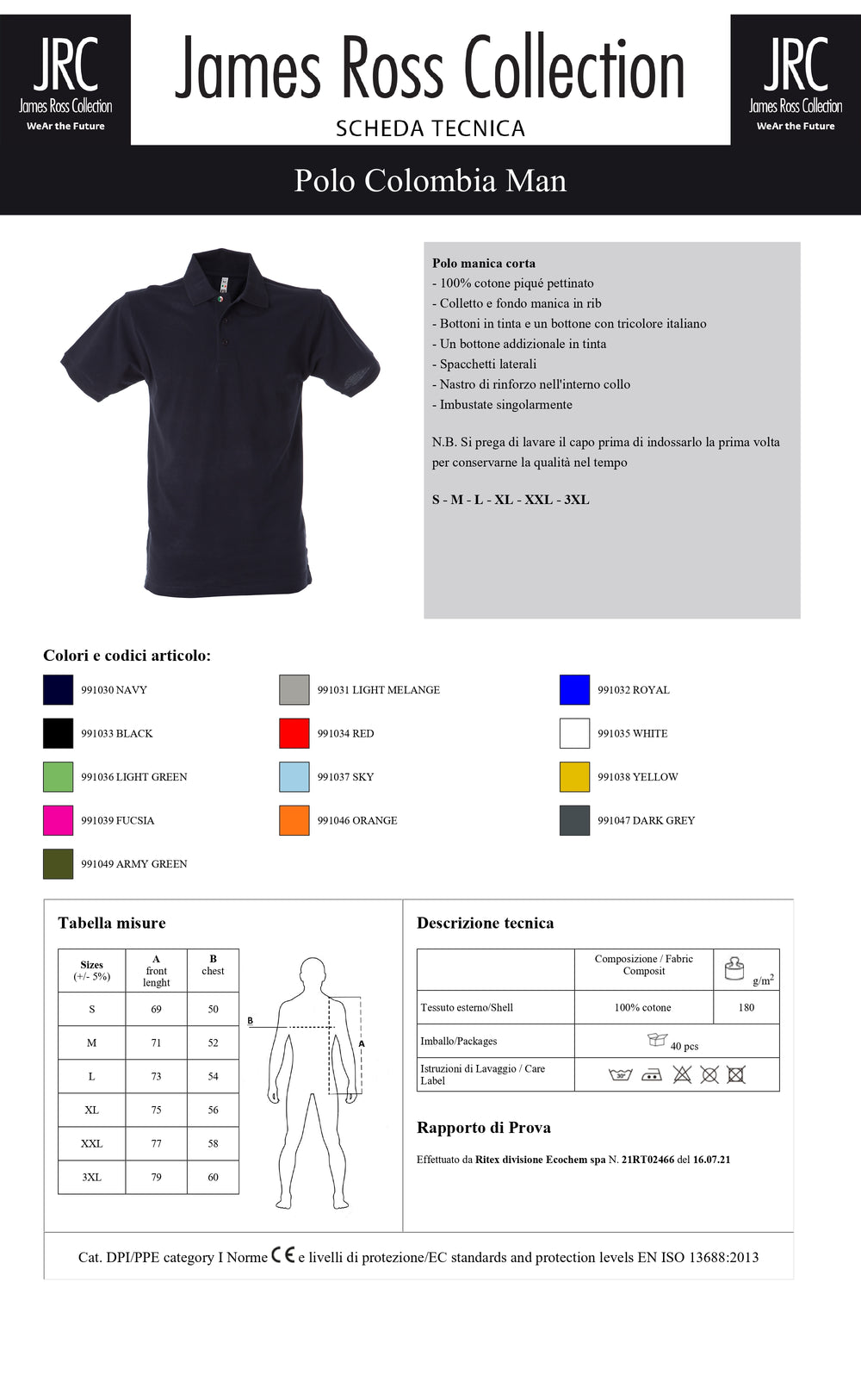 Taglie: S, M, L, XL, XXL, 3XL