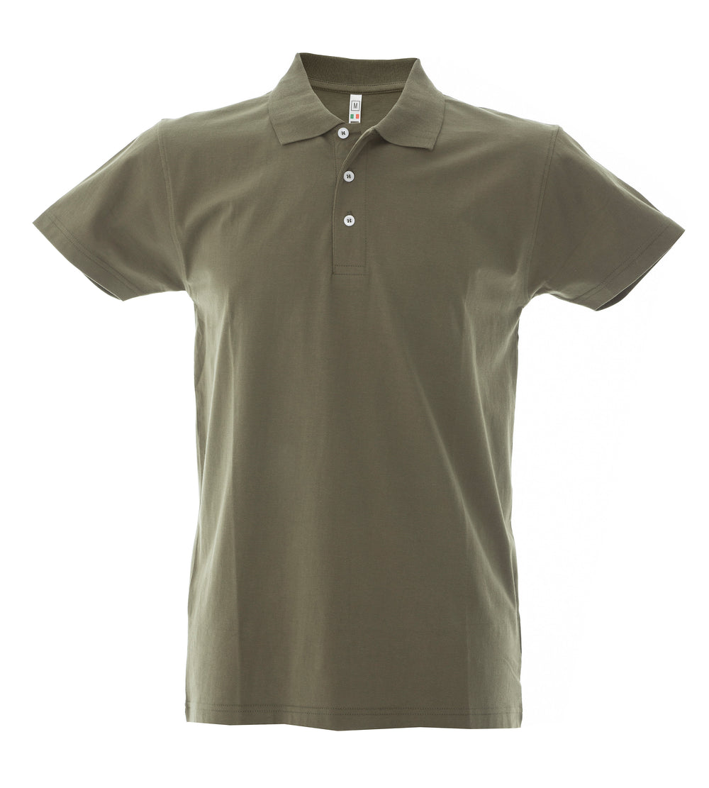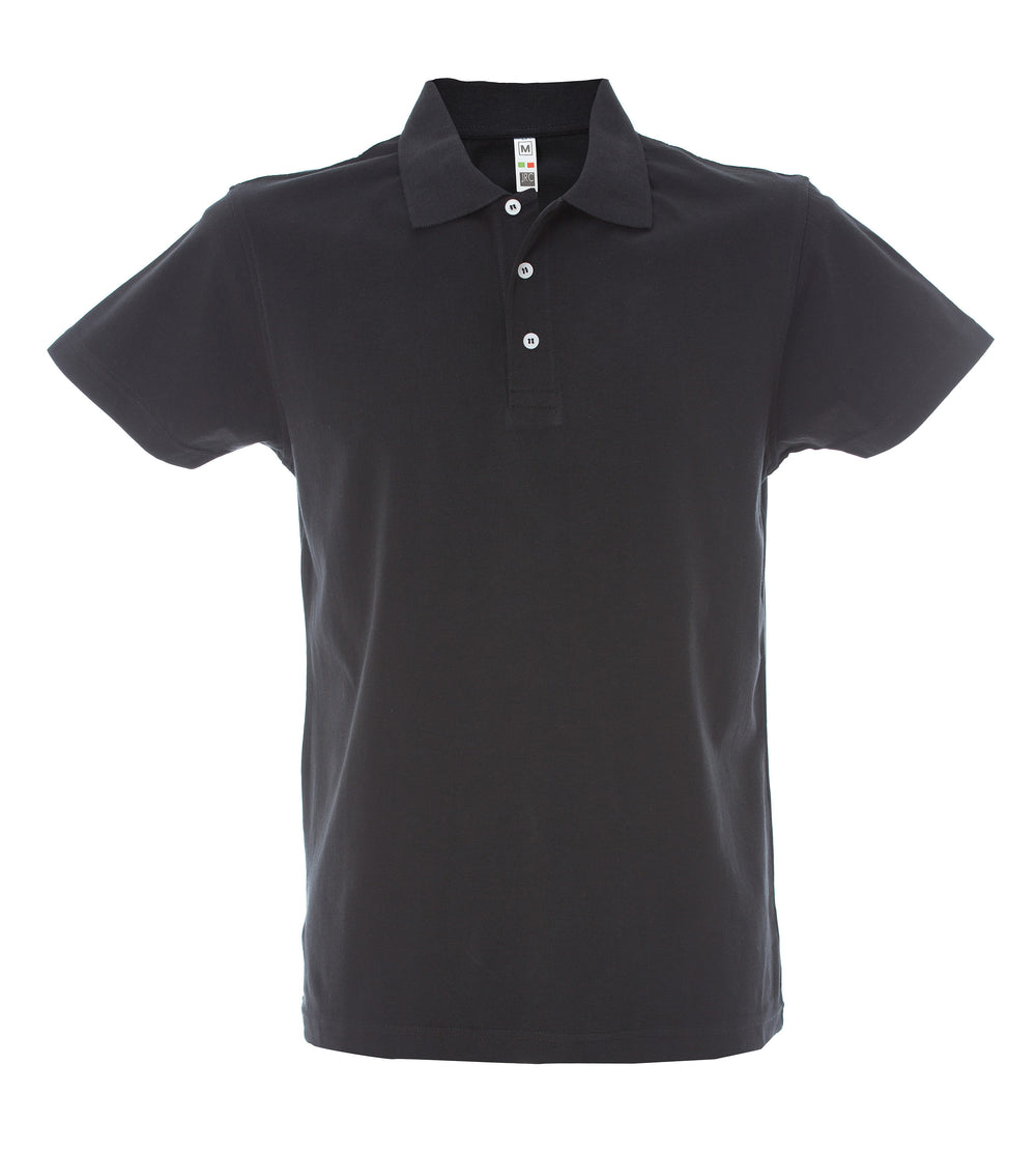 Polo manica corta in Jersey- 100% cotone pettinato. Tre bottoni bianco trasparente, colletto in rib.