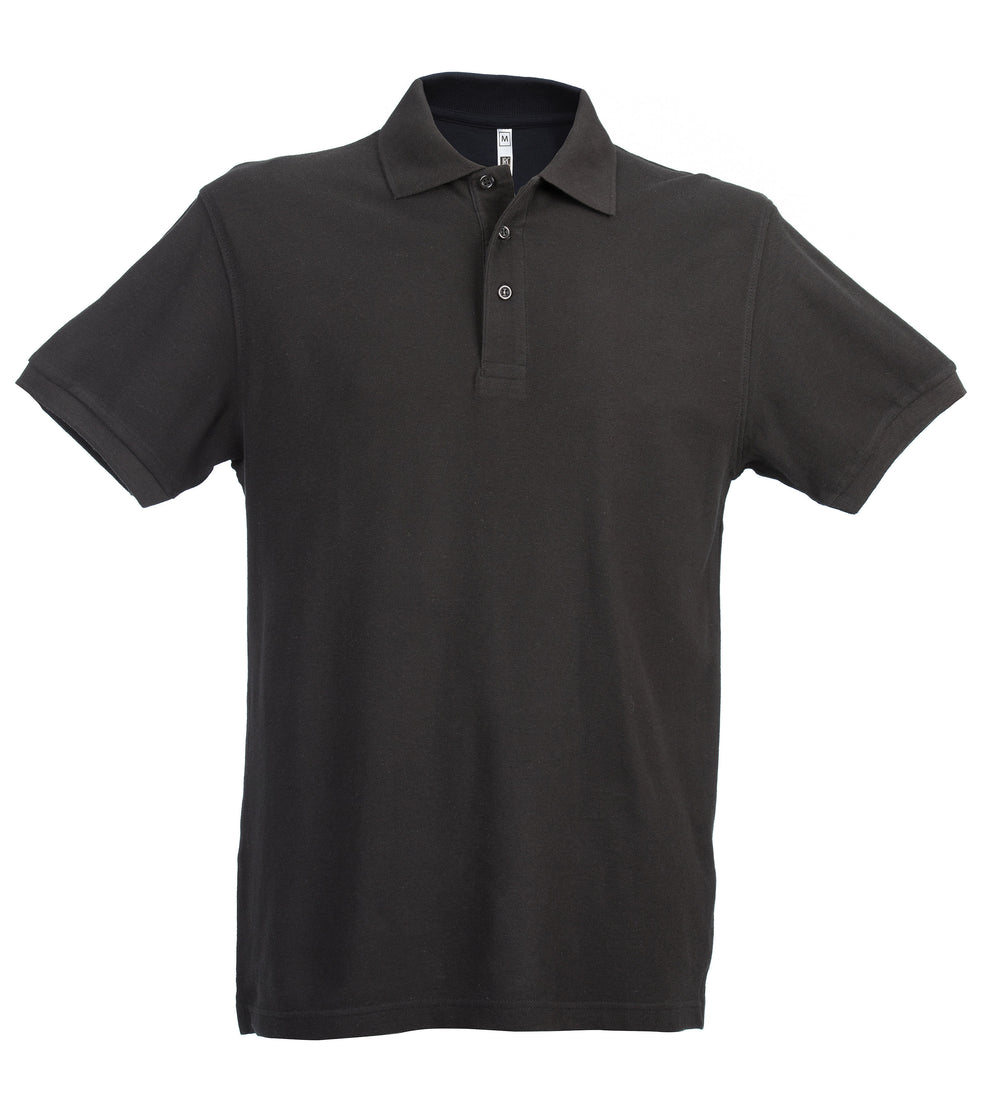 Polo a manica corta - 100% cotone piqué pettinato. Tre bottoni in tinta, colletto e fondo manica in rib, spacchetti laterali - Vendibili in busta da 5 pezzi (pronte per la stampa piegate a metà, complete di bustine singole per il rimbusto).