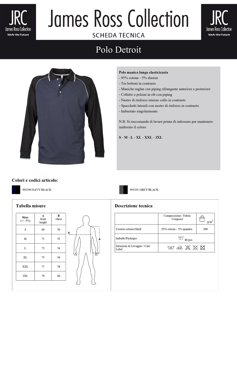 Taglie: S, M, L, XL, XXL, 3XL