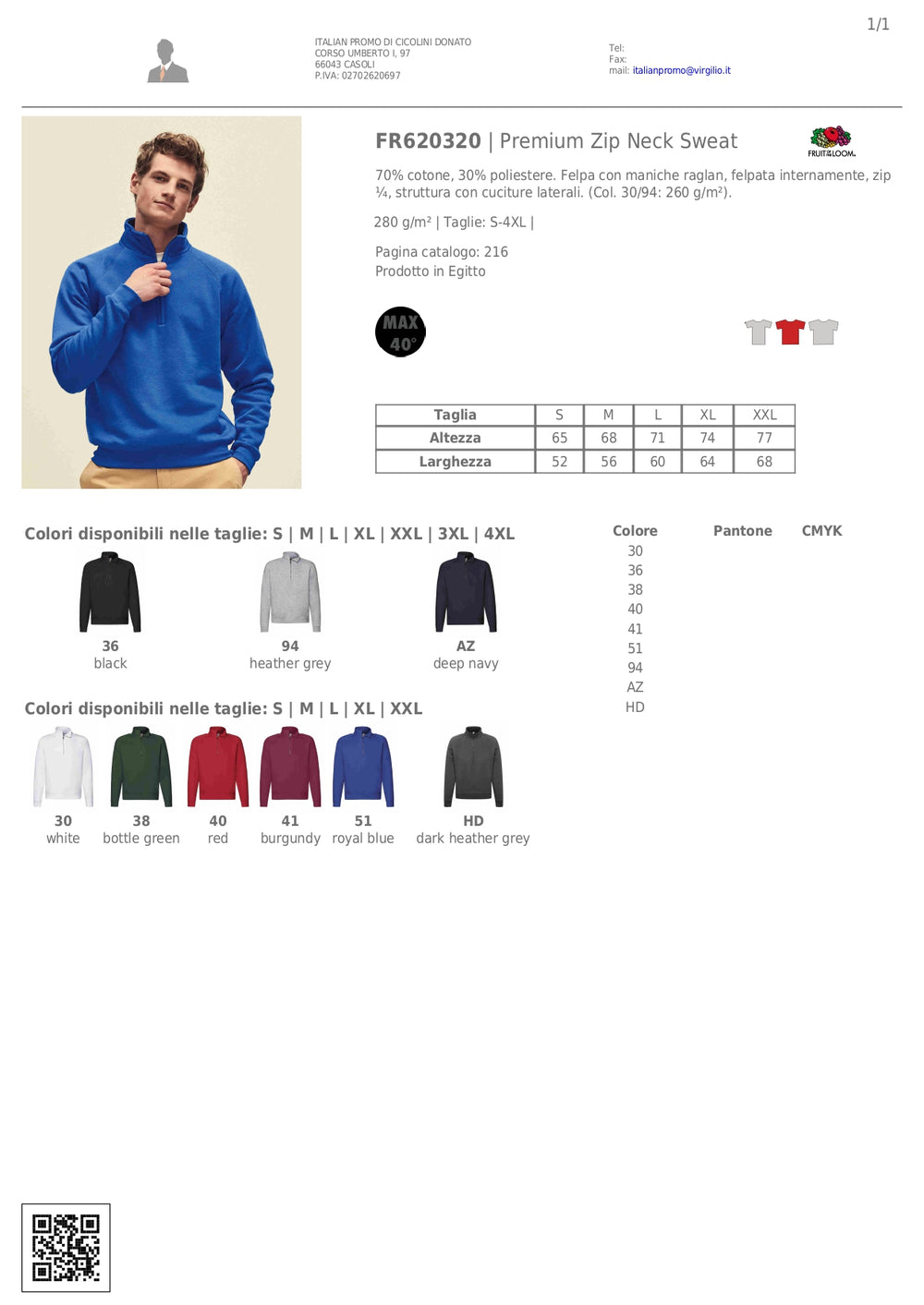 Felpa con mezza zip - 70% cotone, 30% poliestere. Felpa con maniche raglan, felpata internamente, zip ¼, struttura con cuciture laterali.