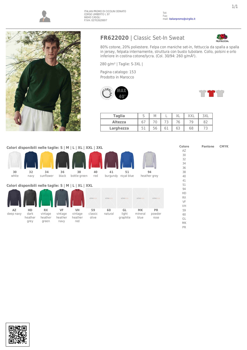 FELPA GIROCOLLO FRUIT OF THE LOOM CLASSIC SET-IN SWEAT UOMO