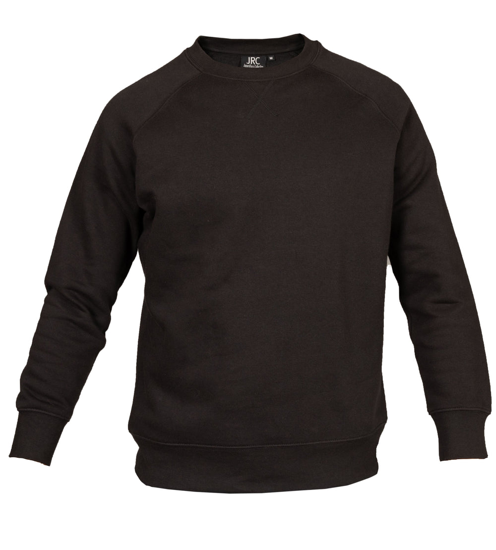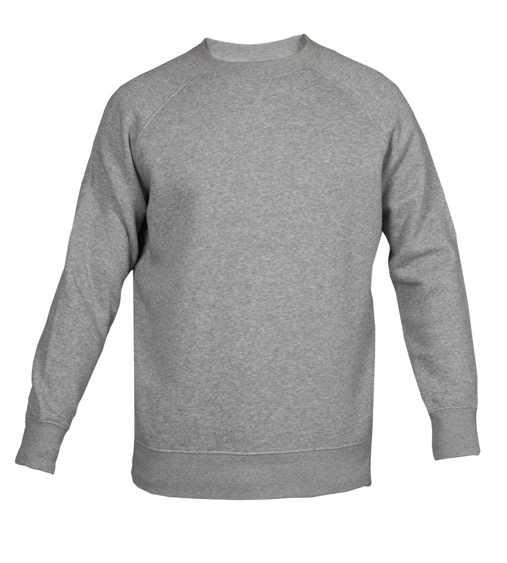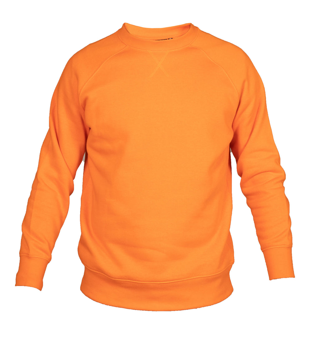 Felpa girocollo 80% cotone - 20% poliestere. Cucitura incrociata sotto il collo, maniche raglan, polsini e fondo maglia in costina elasticizzata, nastro di rinforzo interno collo e cuciture ribattute.