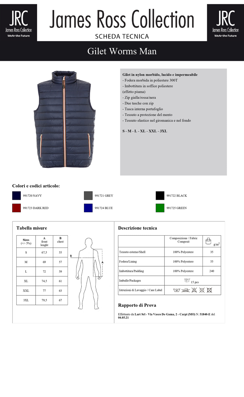 Taglie: S, M, L, XL, XXL, 3XL