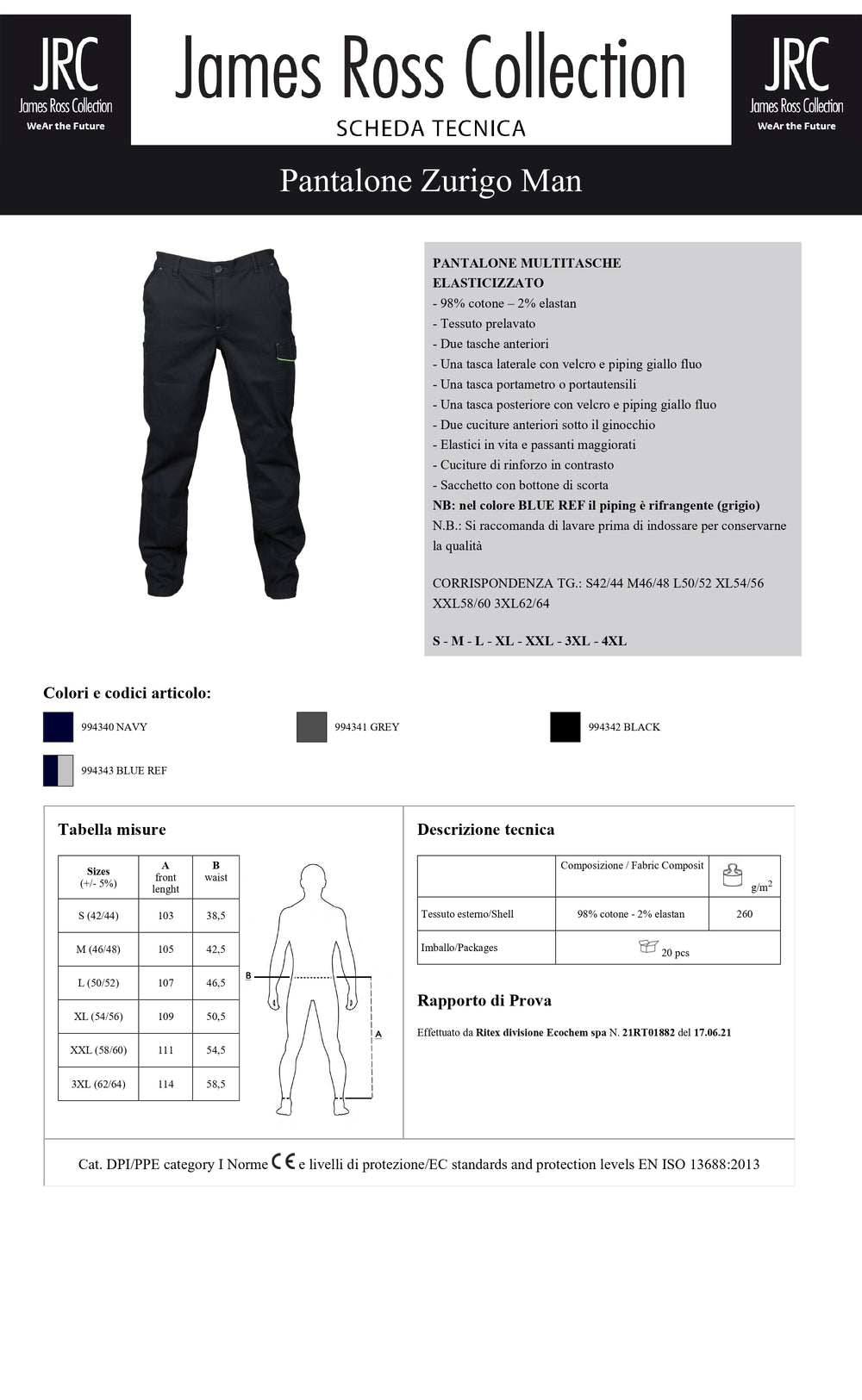 PANTALONE DA LAVORO JRC ZURIGO MAN UOMO – Italian Dress Work