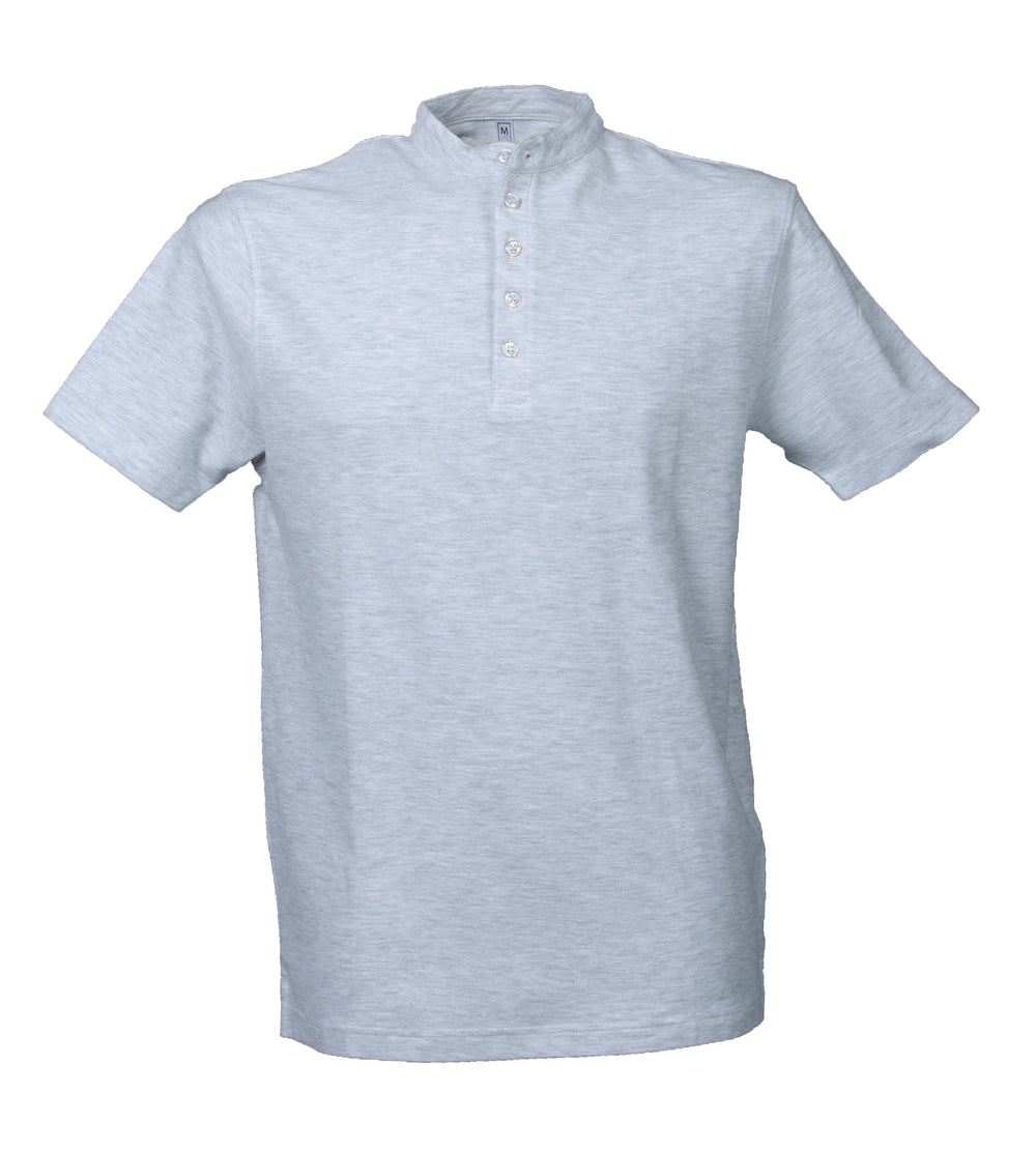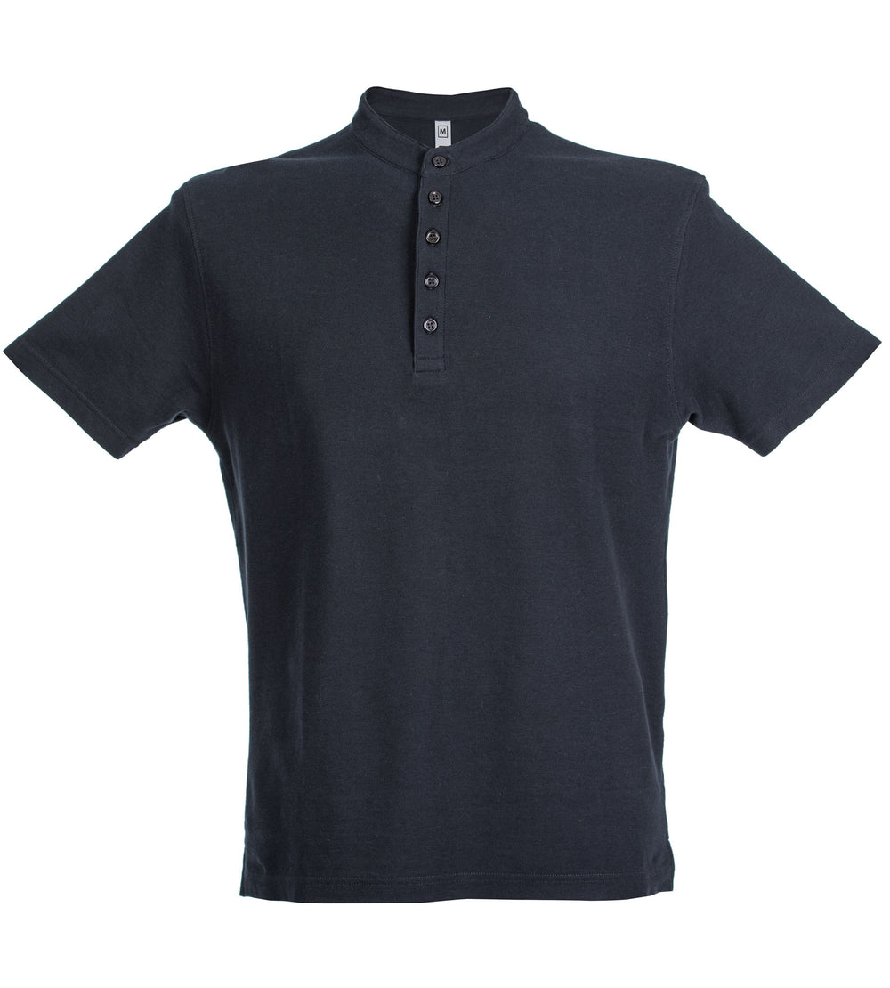 Polo a manica corta - 100% cotone piqué pettinato. Cinque bottoni in tinta, colletto basso alla "coreana", parte posteriore allungata, spacchetti laterali.